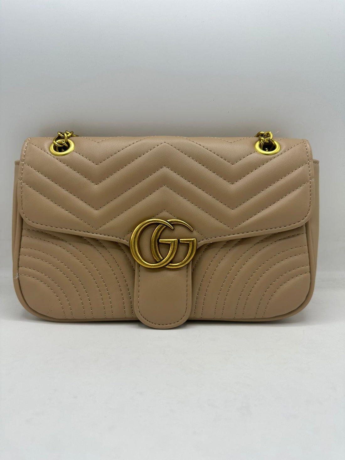 Gucci GG Marmont shoulder bag in a beige matelassé leather with a chevron design and...