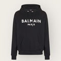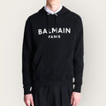 Statement Graphic Design: The centerpiece is a bold, high-contrast White Text Logo (e.g., "BALMAIN PARIS" style) printed prominently across the chest, creating a stark, iconic statement.