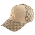BrownBlackThis is an authentic GUCCI Monogram NY Yankee Baseball Hat in Beige and Brick. This stylish cap is crafted of traditional beige on light red Gucci GG monogram cotton canvas with an adjustable panel strap. This is an edgy cap for everyday use from Gucci!