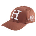 Cap in trench cotton gabardine with "H" motif in Swift calfskin topstitched on felt on the front, and adjustment tab with two polished palladium-plated Clou de Selle snap closures. Lining in cotton and plain silk.