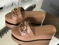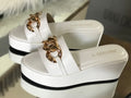 Embellishment: Features a large, interlinked gold-coloured chain detail across the top strap.