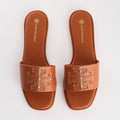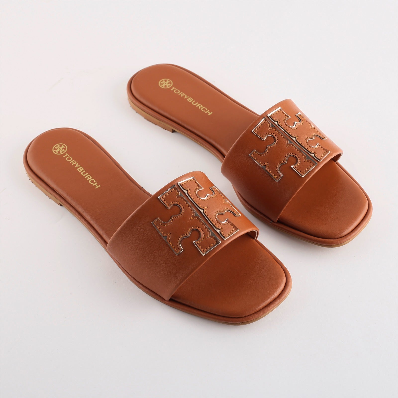 The classic sport slide, streamlined and refined. A trim band, padded in soft leather. A slim cushioned sole for comfort and flexibility. Finished with a Double T, topstitched and oversized for a subtle statement. Crafted in partnership with a Leather Working Group-certified tannery, supporting high standards in leather manufacturing and chemical management. Read less