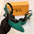 The specific pair in the image is red and appears to have a square vamp. Some Zara kitten heels also incorporate AIRFIT® technology in the insole for added comfort.